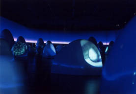 The robot flock is a network of single objects. It shows how the total achievement of a community can be increased through the co-operative efforts of its individual members, just as we find in Nature: A bird which flies with the flock reaches its goal more quickly. In addition to human and artificial intelligence, there is also a collective intelligence which manifests itself in the flock.